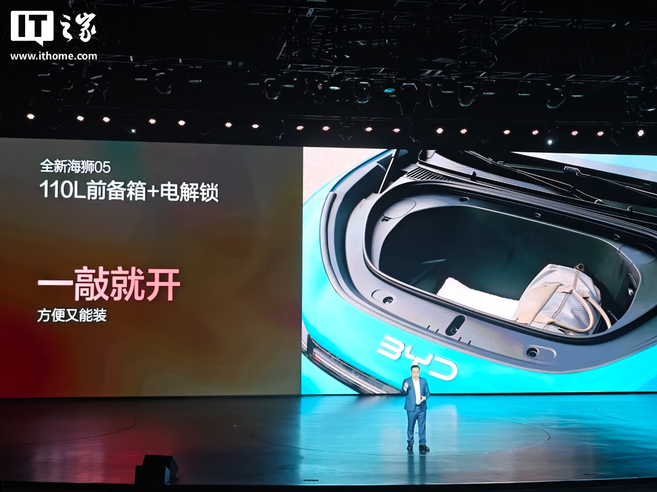 比亚迪全新海狮 05 基于 C-NCAP 五星安全设计标准设计,采用内骨骼式 CTB 安全架构,CBT 电池车身一体化,整车刚性得到提升。新车拥有 2770mm 轴距,支持后排座椅放倒,EV 版有 600L 储物空间、DM-i 版有 650L 容积,全车还有 30 余处细节储物位置。