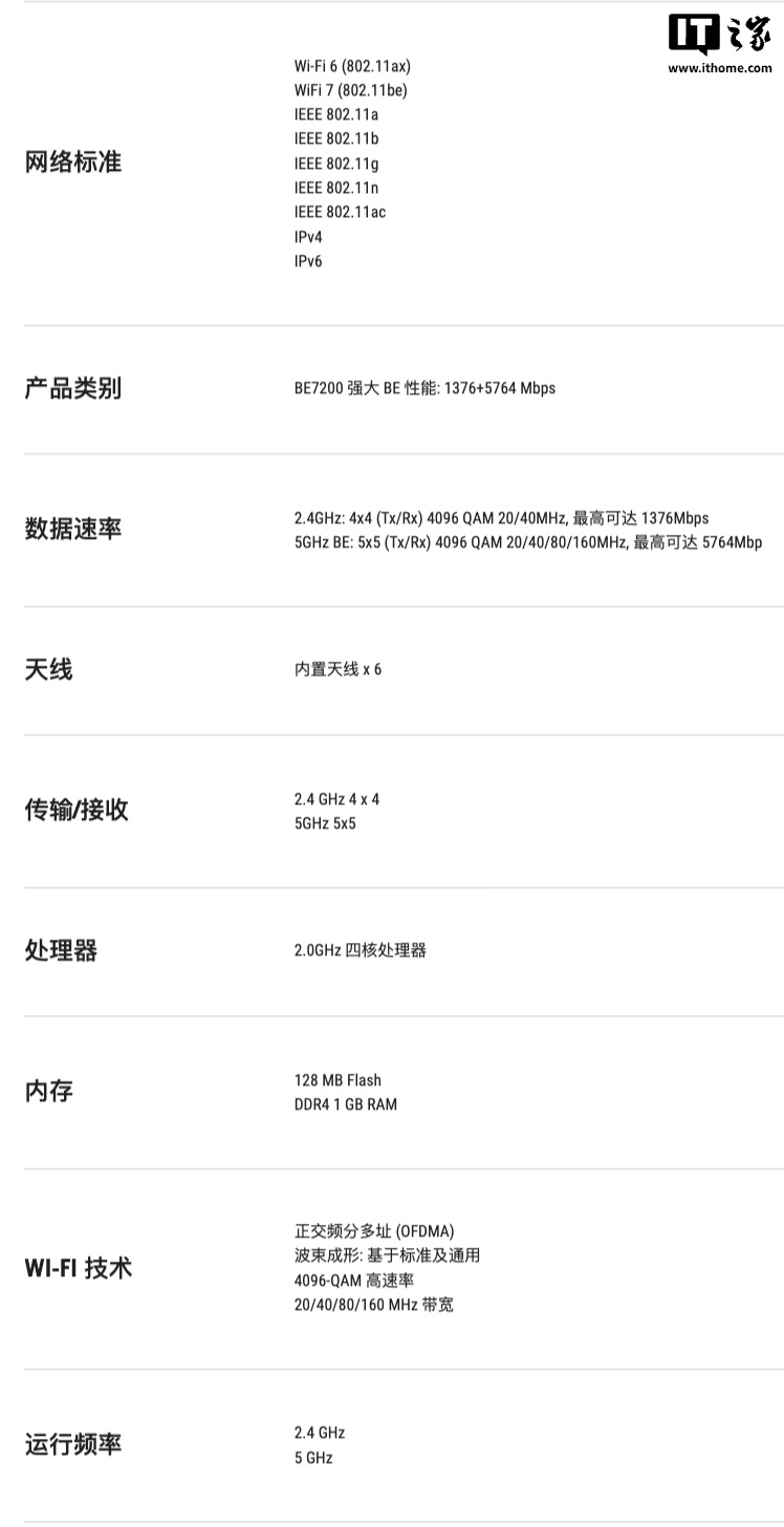 IT之家附路由器参数: