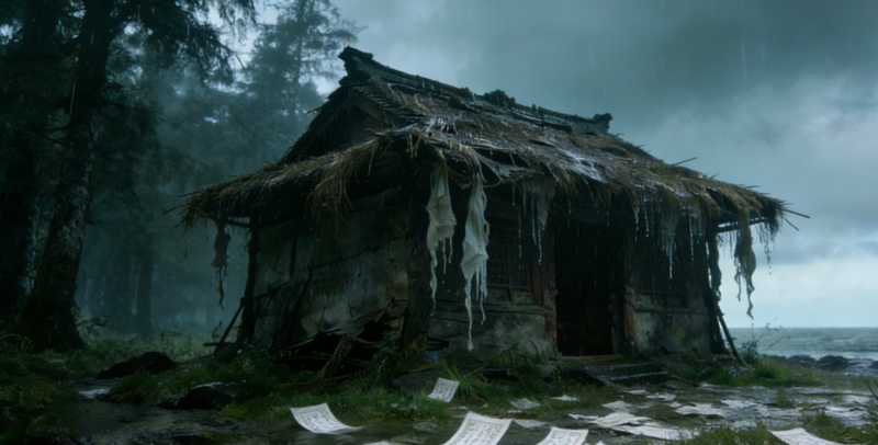 特点:简陋草屋、湿纸钱、“林投姐”木牌、阴森氛围。