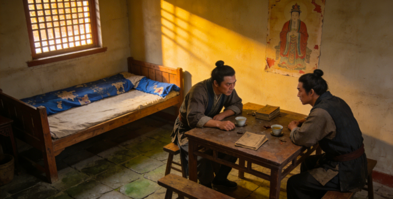 特点:简单床铺、桌椅、谈话密谋场景。