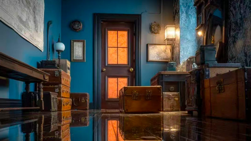 特点:钉铁皮的木箱、英文标识(GUNPOWDER/OPIUM)、火灾戏。